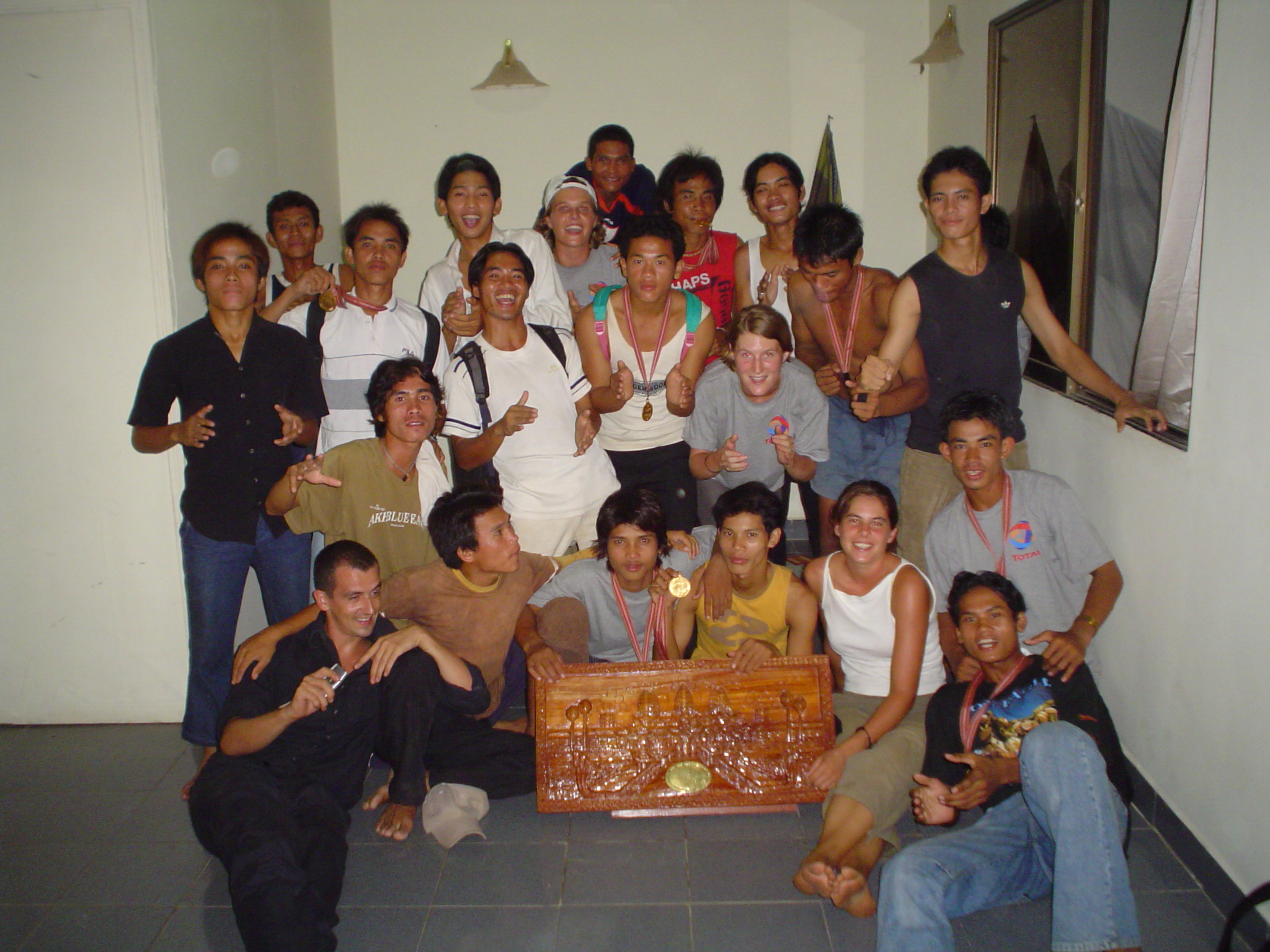 ![]() ViesnaGeistig behindert, studierte Viesna in einer Spezialklasse - ein wichtiger Teil unserer Wohltätigkeitsorganisation. Er machte eine Ausbildung in der Gastronomie und fand eine Stelle in der Kantine der PSE. Gleichzeitig nahm er Reitunterricht im Cambodian Country Club, einem Reitsportzentrum in Phnom Penh. Er erwies sich als so gut, dass er mehrere Goldmedaillen gewann und vom Club übernommen wurde. |